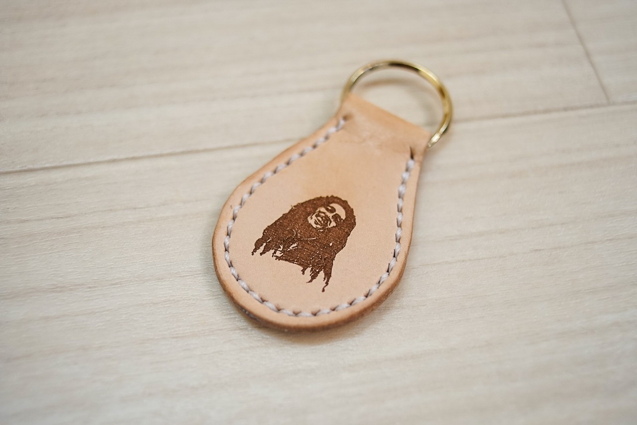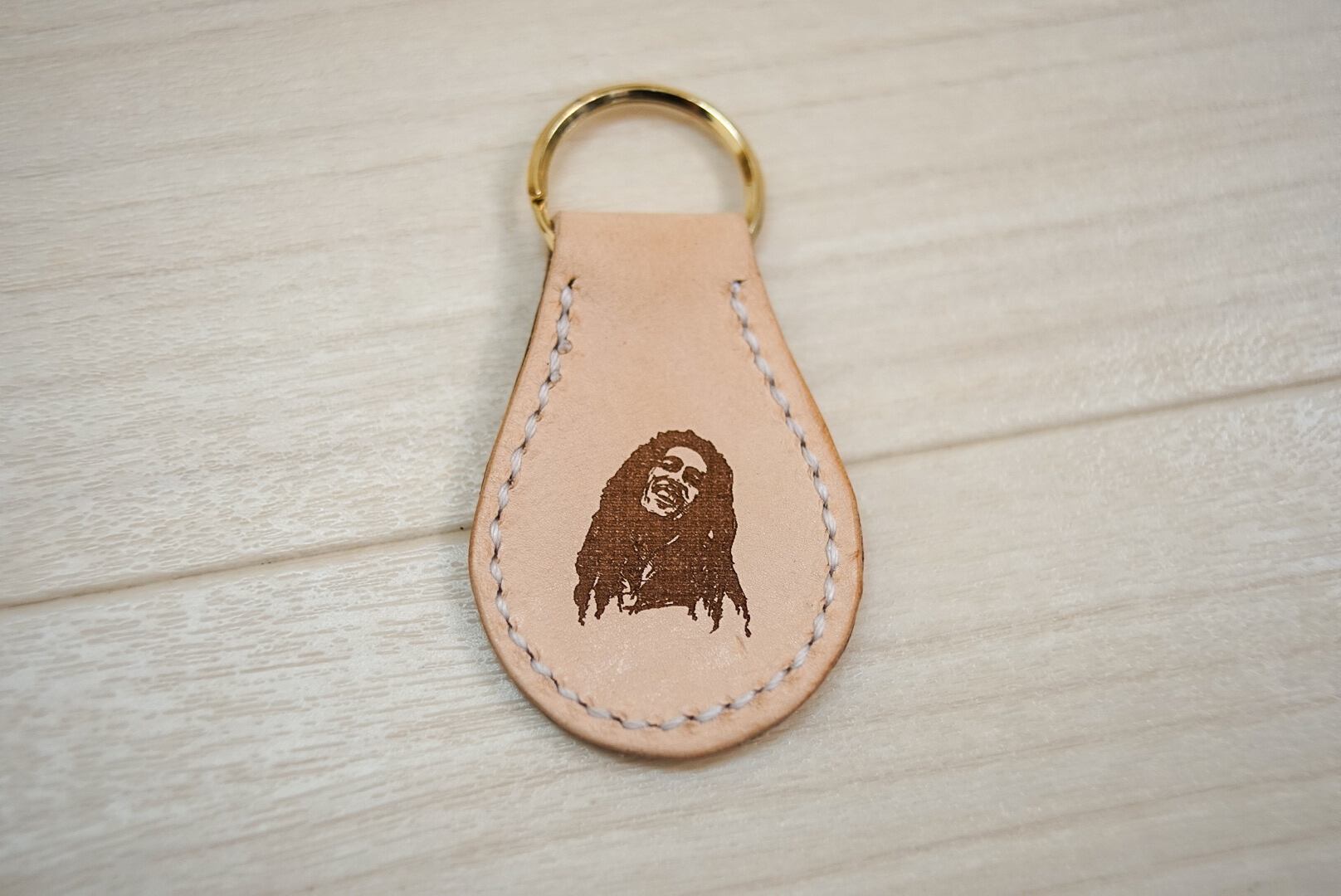 This is a handmade keychain with Bob Marley engraved using a laser engraving machine.